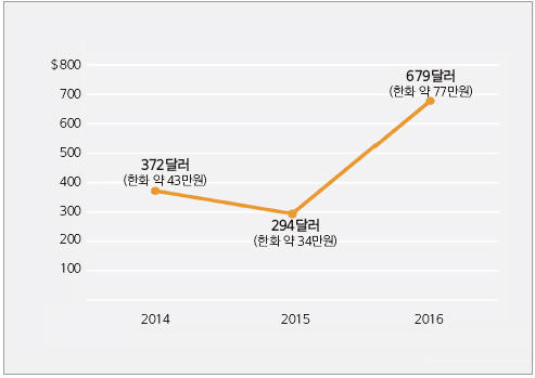 ▲ 표 3. 랜섬웨어의 평균 요구액(몸값)