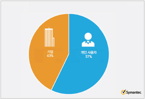 이번 조사 결과, 기업 사용자가 랜섬웨어 감염의 약 43%를 차지했다.