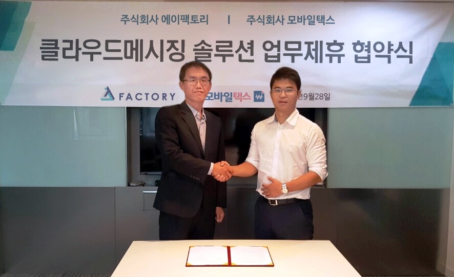 클라우드 메시징 솔루션 전문 스타트업 에이팩토리는 10월 출시 예정인 ‘컴파인(COMFINE)’의 정식 출시를 앞두고, 모바일 기반 회계장부 작성과 세금 신고 대행업무 어플 개발 및 관리운영 업체인 모바일택스와 서비스 이용 계약 및 공동 마케팅 제휴 계약을 체결했다.