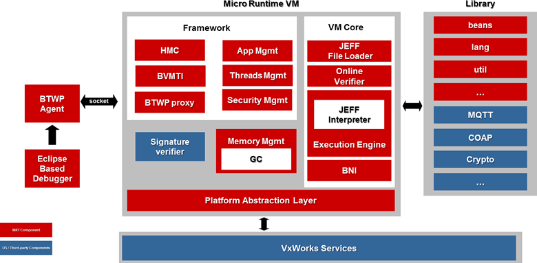 특히 마이크로 런타임을 자바 런타임 엔진 및 윈도우나 리눅스에서 호스팅되는 이클립스(Eclipse) 기반의 소프트웨어 개발 킷(SDK)과 함께 적용하면, VxWorks 기반의 디바이스를 위한 자바 애플리케이션의 개발, 디버깅, 배포에 있어서 최적의 솔루션으로 활용할 수 있다.