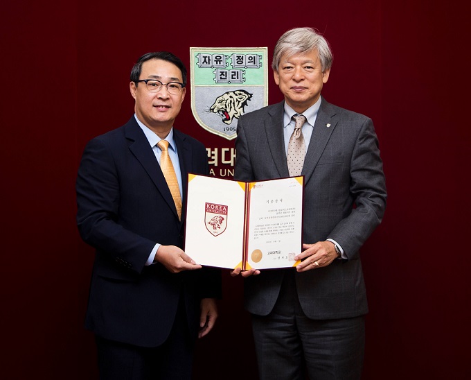 ▲ 왼쪽부터 키사이트 윤덕권 대표이사, 고려대 염재호 총장