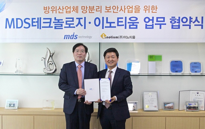 IT융합 솔루션 업체 MDS테크놀로지(대표 장명섭)는 데이터 보안업체 이노티움(대표 이형택)과 방산분야 망분리 보안사업’ 협력을 골자로 하는 업무 제휴를 맺었다고 11일 발표했다.