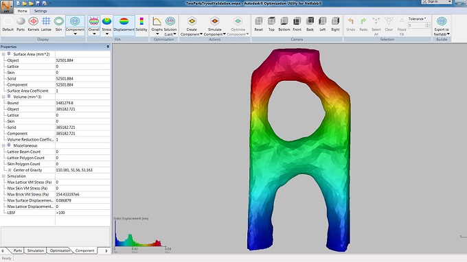 NETFABB에는 설계 최적화 도구가 포함되어 있어 독특한 소재 속성을 사용하여 가볍고 유연한 결과를 얻을 수 있다. 기존 모델링을 기반으로 격자 구조를 갖는 모델 데이터를 쉽게 생성할 수 있고 사용자가 원하는 강성과 무게를 기반으로 설계 최적화를 구현할 수 있다.