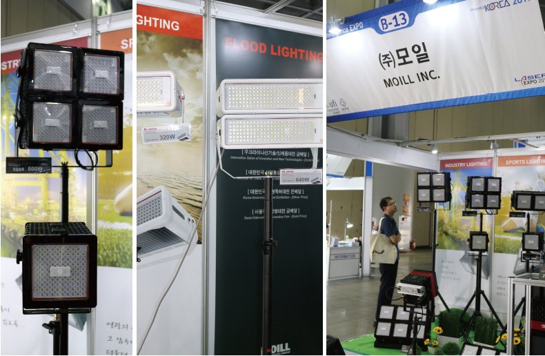 모일라이트의 VT 시리즈 이외에 이번에 새롭게 출시한 아파트나 빌딩 외벽을 비추는 경관 조명용 UL 시리즈, 대형 LCD 검사 장비에 사용되는 검사용 조명 ZL 시리즈, 초고속 카메라에 플리커 없이 사용이 가능한 KL 시리즈, 휴대폰이나 PC에서 제어가 가능한 스마트 LED 조명 SL 시리즈, 무더운 사막과 같은 중동 지역에서도 사용이 가능한 AL 시리즈를 시장에 선보이고, 자사와 함께 국내외 시장을 선도해 나갈 파트너를 만나고 싶습니다.