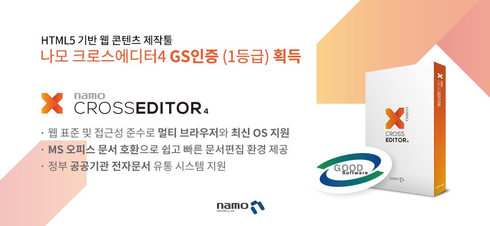나모에디터 (대표 이수근)는 HTML 5 기반 웹 콘텐츠 제작 툴 크로스에디터 4.0이 한국정보통신기술협회 GS 인증 1등급을 획득했다고 14일 밝혔다.