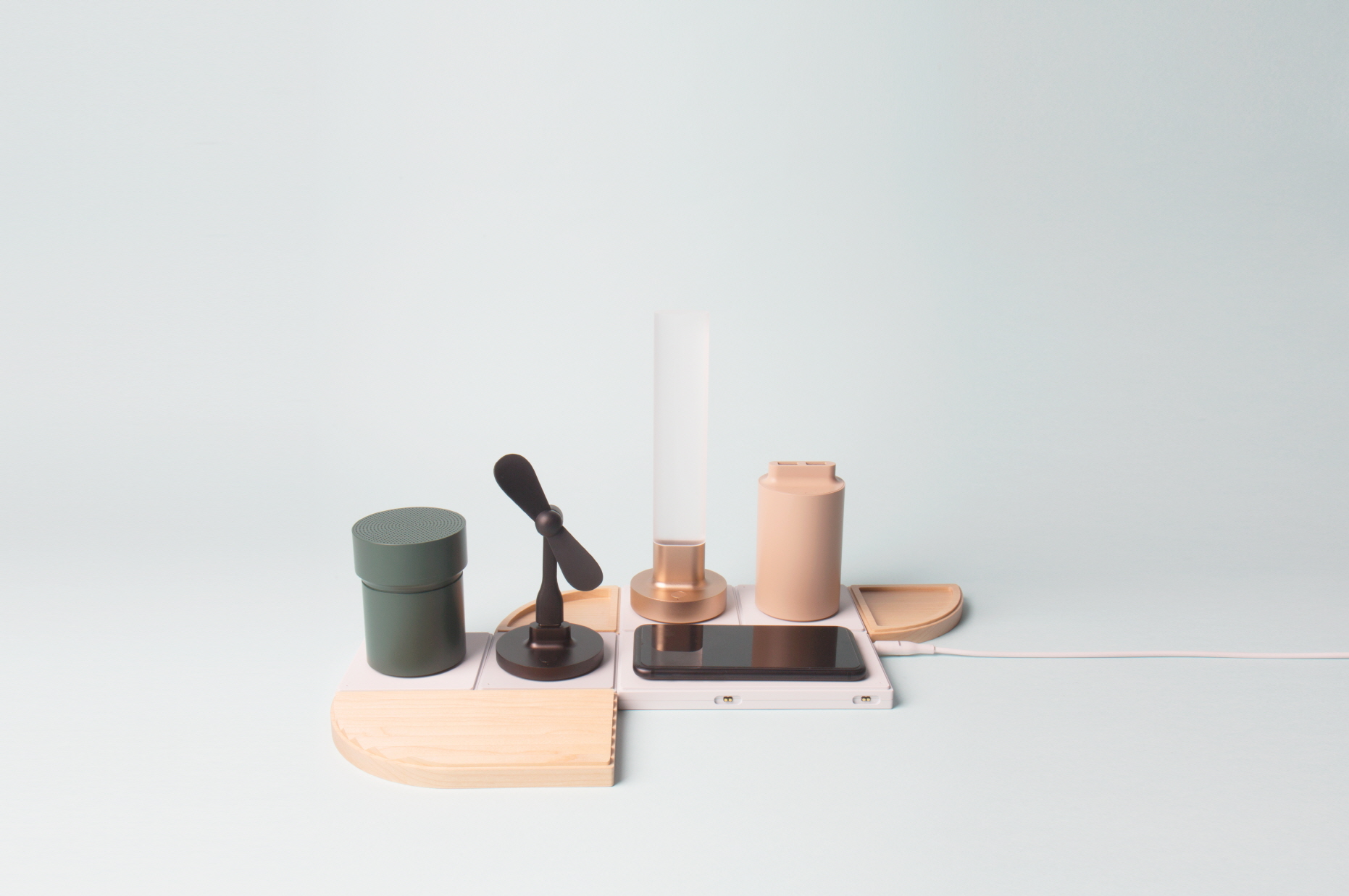 모바일아일랜드는 기본 3종 세트와 함께 ‘빌딩’ 제품 시리즈도 선보였다. ‘빌딩’은 무선 스피커, 무드 스탠드등, 대용량 배터리, 선풍기 등 책상 위 소품들을 깔끔하게 정리해주며 디자인과 기능을 가미한 제품이다.