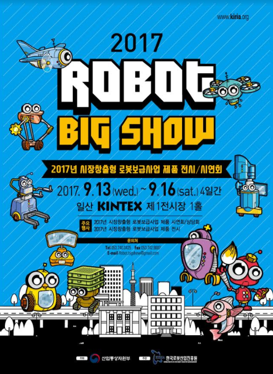 한국로봇산업진흥원이 국내 로봇 제품 보급 및 확산과 로봇산업 시장 확대를 위해 실시해온 시장창출형 로봇보급사업의 제품 전시·시연회 ‘로봇빅쇼’를 13일부터 16일까지 일산 킨텍스 제1전시장 1홀에서 개최한다.