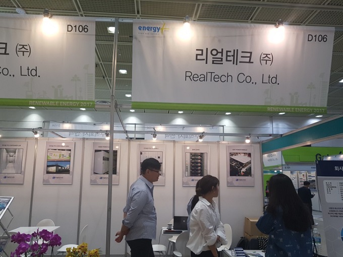 리얼테크가 9월 27(수)일부터 29일(금)까지 삼성동 코엑스에서 열리는 Energy Plus 2017(2017 에너지풀러스)에 참가해 전력변환장치, 풍력·태양광 인버터, 에너지저장장치 등을 전시했다.