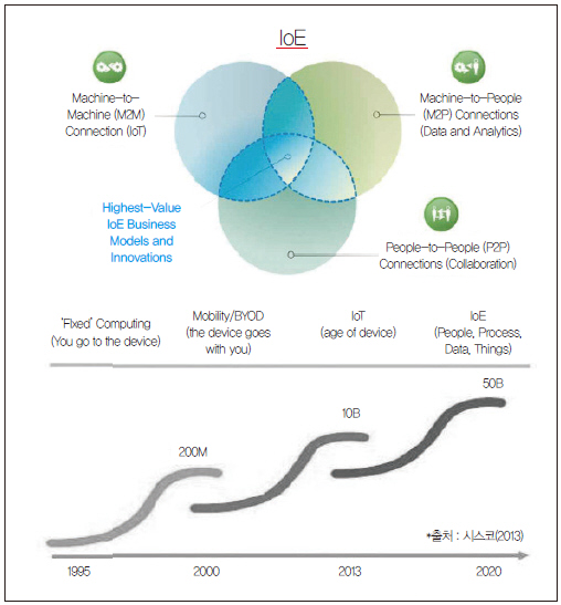 ▲ 진화된 인터넷 : IoD(R2R)-IoP(P2P)-IoT(M2M)