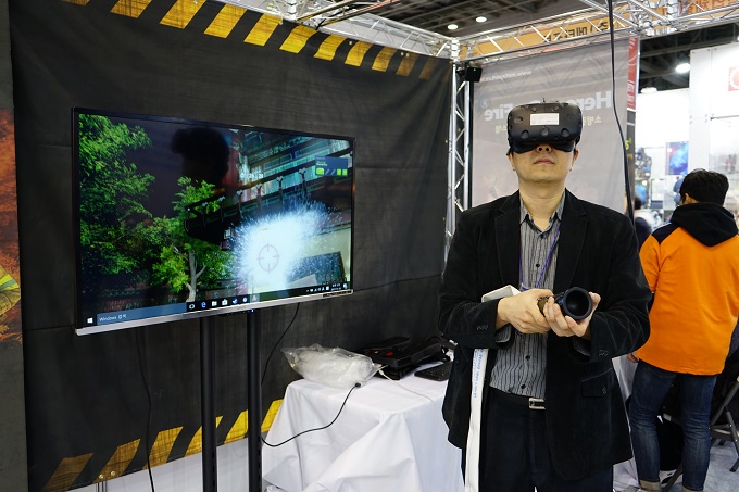 ▲ 메타포트의 VR 가상 훈련 시스템 '히어로스 온 파이어' 시연 모습
