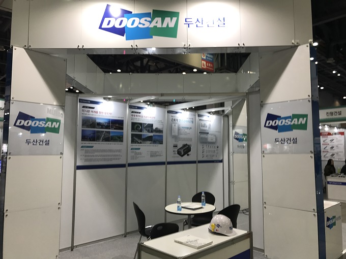 두산건설이 11월 15일부터 11월 17일까지 일산 킨텍스에서 열리는 ‘2017 국제도로교통박람회'에 참가해 터널 공사 시 근로자 위치를 기반으로 출역상황 및 현재위치 파악과 환경정보 획득을 가능케하는 근로자 안전관리시스템을 선보였다.