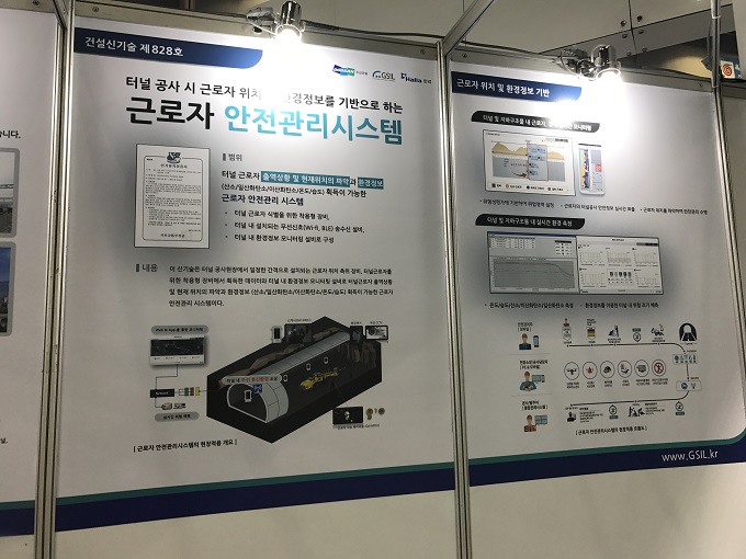 이번 전시에서 선보인 근로자 안전관리시스템은 터널 공사현장에서 일정한 간격으로 설치되는 근로자 위치 측위장비와 터널근로자를 위한 착용형 장비에서 획득한 데이터와 터널 내 환경정보 모니터링 설비로 터널근로자 출역상황 및 현재 위치 파악과 환경정보(산소/일산화탄소/이산화탄소/온도/습도) 획득이 가능한 솔루션이다.