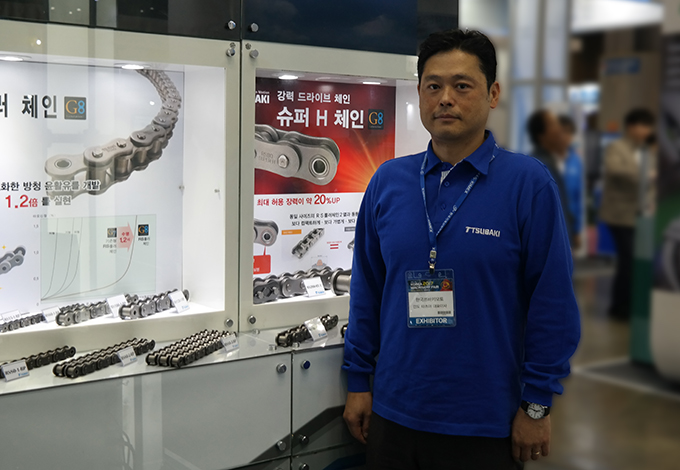 A. 체인은 자동화의 근간이 되는 부품이다. 자동화의 경우 메인터넌스의 횟수를 줄이기 위해 체인의 능력이 중요하다. 또 쯔바키모토는 체인 이외에도 과부하 안전장치와 유·공압 실린더보다 전력 소비량을 10분의 1로 줄인 파워 실린더 제품도 구비하고 있어 자동화, 에너지 세이빙, CO2 삭감에 공헌할 수 있다.