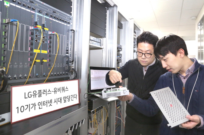 LG유플러스는 국내 중소 네트워크 장비 업체 ‘유비쿼스’와 손잡고 기존 기가 인터넷보다 10배 빠른 홈 10기가 인터넷 서비스 솔루션을 공동 개발, 내부 기술 시연에 성공했다고 밝혔다.