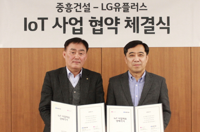 LG유플러스가 중흥건설과 홈IoT 시스템 구축 협약을 맺고, 중흥건설 및 중흥토건이 공급하는 신축 아파트 단지 홈IoT 플랫폼 구축을 공동으로 추진하기로 했다고 밝혔다.