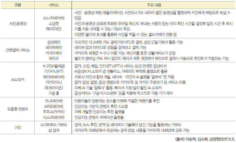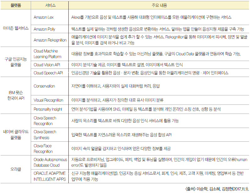 ▲ 표 2. AI 기술 기업들이 제공하는 클라우드 컴퓨팅 기반의 API들