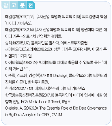 IoT 디바이스와 콘텐츠 이용자의 이용 기록, 기업들의 거래 데이터 등 다양한 데이터가 생성되고 있다. 기업들이 데이터를 활용해 경쟁력을 높이려는 의지가 더해지면서 AI와 블록체인의 경쟁력이 더해가고 있는 것이다. 이에 이번 호에서는 데이터 관련 이슈를 되짚어보고, 데이터 거버넌스(Data Governance)가 왜 필요한지와 무엇인지를 개념 및 기능으로 나누어 설명하고, 데이터 거버넌스가 기업에게 주는 혜택을 살펴보고자 한다.