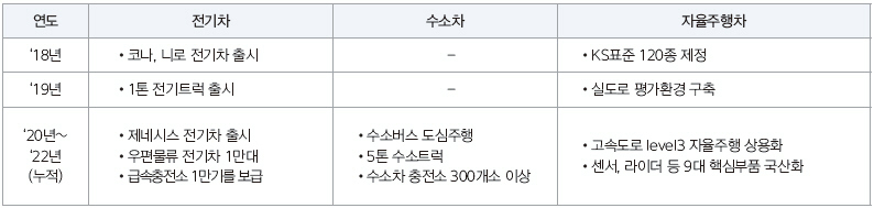 이러한 민·관의 전략적 협력을 통해 전기·자율주행차, 에너지신산업 등 신산업 분야에서 2022년까지 세계 시장을 선점하고, 미래 사회를 경험할 수 있는 괄목할만한 성과를 내기로 했다.