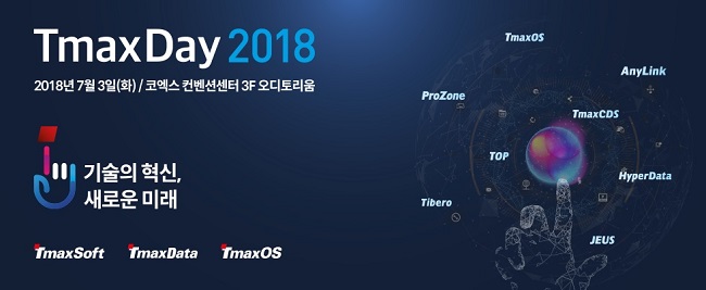 국내 대표 SW기업 티맥스는 오는 7월 3일 서울 강남구 코엑스 컨벤션센터 3층 오디토리움에서 고객, 파트너 및 일반인을 대상으로 연례 최대 행사인 ‘티맥스데이(TmaxDay) 2018’을 개최한다고 25일 밝혔다.