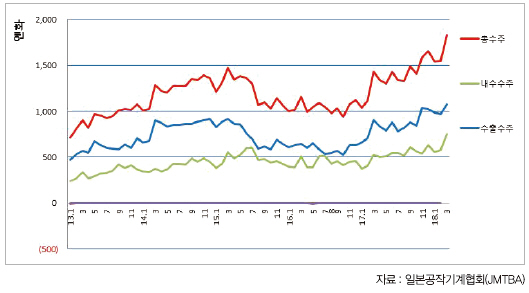 ▲ 2018년 4월 일본 공작기계 수주 현황