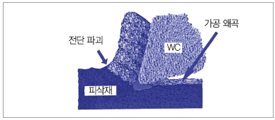 소결법으로 제조된 절삭공구는 날끝 라운드(절삭날의 예리함)가 크기 때문에 절삭저항이 증대하고, 가공 재료 표면에 왜곡 등의 변질층을 남긴다(그림 1).