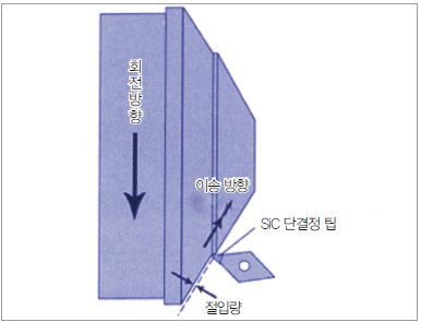 SiC 단결정 날공구를 이용해 가공을 하는 경우, 이것을 활용하기 위해 날공구 날끝 형상이나 이것을 이용하는 가공기계 자체의 모습을 검토할 필요가 있다고 생각한다.