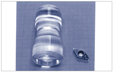 그림 8은 가공 전의 피삭재이고, 재료는 크롬몰리브덴강(SCM420H)이다. 경면부는 침탄담금질이 실시되어 표층 0.4mm의 경도는 58~62HRC이다.