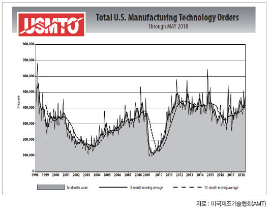 ▲ 2018년 5월 미국 공작기계 수주 현황
