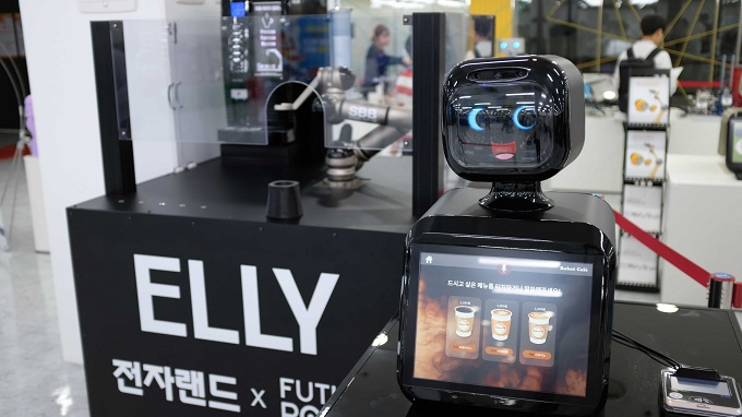 퓨처로봇은 17일부터 26일까지 전자랜드 신관4층에서 진행되는 로봇전시관에서 전자랜드와 협업·개발해 커피 주문 및 결제부터 로봇 팔을 이용한 음료 제공까지 가능한 카페 로봇 ‘엘리’를 첫 선보였다. ‘엘리’는 퓨처로봇의 결제 로봇인 ‘퓨로-Nova’와 로봇 팔, 전자동 커피머신을 연결한 카페 로봇으로 전자랜드와 퓨처로봇이 협업하여 PB제품으로 선보였다. 고객의 얼굴을 인식하고 반응할 뿐 아니라 음성으로도 커피 주문이 가능하다. 연결된 카드리더기에 신용카드로 결제를 하면, 전자동 커피머신과 연결된 로봇팔이 직접 커피머신을 작동하고 추출된 커피를 고객에게 제공한다. AI