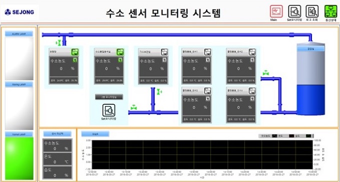 세종공업이 개발한 수소 안전 모니터링 시스템은 누설 검지 센서와 모니터링 관제 시스템으로 구성됐으며, 수소 누출이 우려되는 장소에 센서를 설치한 후 유무선으로 전송되는 누설량과 농도 신호를 모니터링하는 장치다.