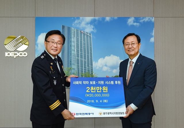 한국전력(대표이사 사장 김종갑)은 9월 4일 전남 나주 본사에서 광주지방경찰청에 후원금 2천만 원을 전달했다고 밝혔다.
