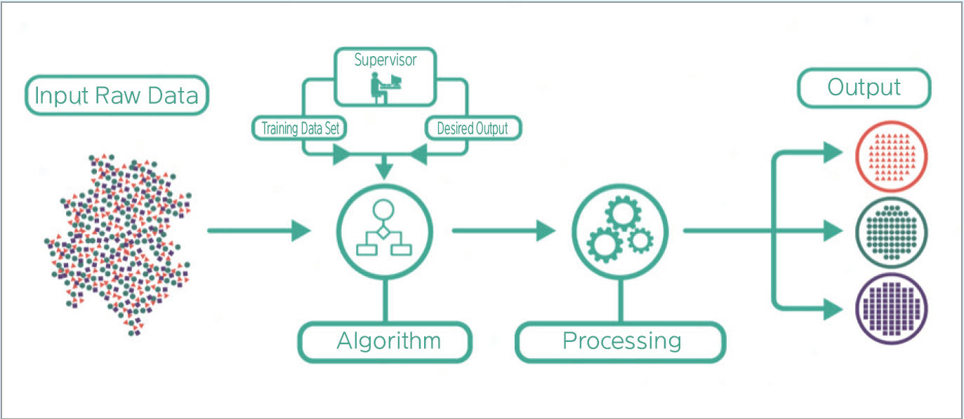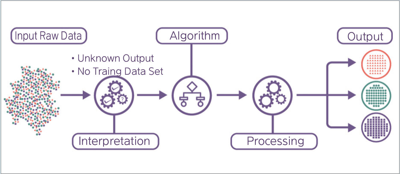 ▲ 지도학습 • 자율 학습(Unsupervised learning) 자율 학습은 특정 데이터에 대하여 정답 또는 레이블이 없는 데이터 집합이 주어지는 경우의 학습이다. 예) 고양이 사진 그룹, 강아지 사진 그룹, 호랑이 사진 그룹을 통해 숨어있는 패턴이나 형태를 찾아내는 학습이다.