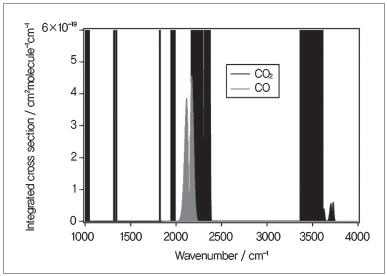▲ 그림 1 CO 및 CO2의 적분 흡수 단면적