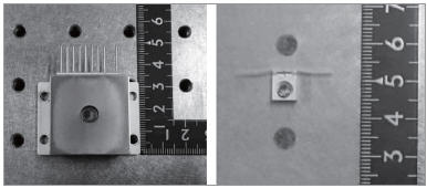 왼쪽 측 : HAMAMATSU제 중심 발진 파장 8μm의 양자 캐스케이드 레이저.