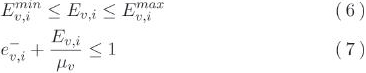 는 단위 시간의 주행에 필요한 SOC이다. Ev, i는 EVν가 노드 i에서 충전하는 에너지량,μν>는 배터리 용량이다. 충전에서 각 EV는 이하의 2가지 제약 조건을 충족시키는 것으로 한다.