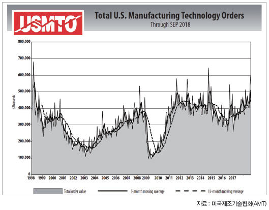 ▲ 2018년 9월 미국 공작기계 수주 현황