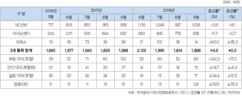 공작기계 시장 동향 (2018년 9월)