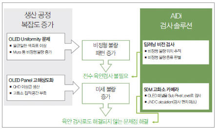 OLED 패널 검사의 문제점을 AIDi(AI 검사 + 고화소 50M 카메라)로 해결할 수 있다