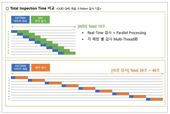 육안 검사 대비 검사 시간 2배 이상 단축 가능하다.