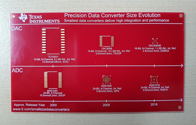 ▲TI의 정말 데이터 컨버터 크기 2000년, 2009년, 2018년 변천사 (최신 제품일수록 소형화 되고 있다)
