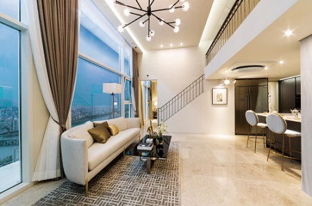 더 라움 펜트하우스는 전용면적 58~74㎡, 지하 6층~지상 25층 규모로 지어지며 상업시설과 함께 오피스텔 357실이 조성된다. 세대 내부는 4.5m의 층고와 대리석 마감의 아치형 계단 등으로 설계되며, 거실 전체는 통유리로 구성 돼 있어 남산과 한강을 한눈에 조망 할 수 있다는 게 업체의 설명이다.