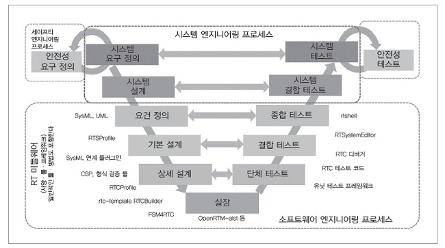 그림 3. V자 개발 모델의 예와 RT 미들웨어의 관계