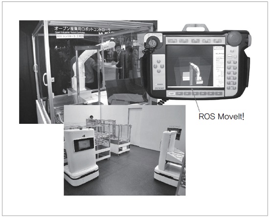 여기에서 ORiN PAC과 OSS를 조합함으로써 OSS의 적용 분야 확장이 가능해진다. 그림 10에 나타낸 사례에서는 ORiN PAC이 제공하는 ROS 라이브러리(CAP-ROS node, ROSSerial-CAO 게이트웨이 프로바이더)를 이용하고 있다. 이 시스템 구성에 의해 MoveIt! 등 ROS 상에서 개발된 애플리케이션을 이용해 ORiN에 의해 서포트된 암 로봇이나 이동 로봇이 동작하는 시스템이 실현되고 있다.