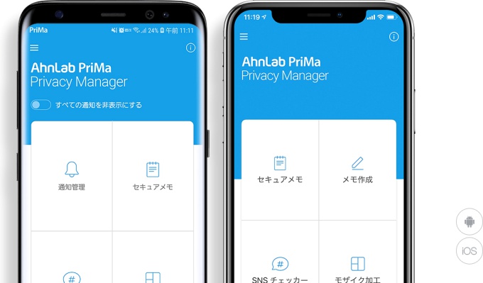 이번에 일본에서 출시된 안랩 프리마는 △페이스북, 인스타그램, 트위터 등 소셜미디어와 연동된 서비스 관리 및 페이스북 개인정보 공개범위를 설정할 수 있는 '소셜미디어 보안' △메모, 사진 등 미디어파일 내 민감 정보를 암호화 저장하는 '보안 메모' △알림 메시지 내 악성URL/개인정보 검사 및 관리하는 '알림 검사' △사진의 주요정보를 쉽게 가린 후 공유할 수 있는 '모자이크' 등 다양한 개인정보보호 기능을 제공한다.