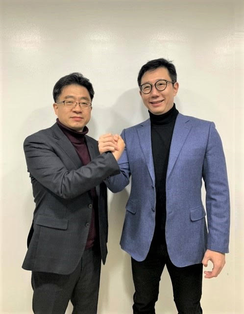 ▲ 씽크라이온 정정용 대표(좌)와 비즈모델라인 김재형 대표(우)가 제휴를 맺고 기념촬영하고 있다. <사진 : 씽크라이온 제공>