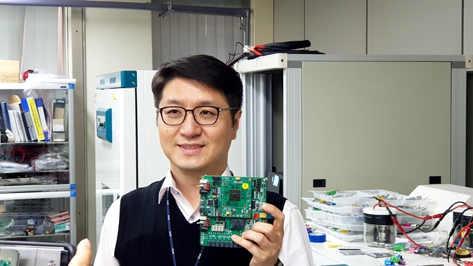 ▲ 알데바란 프로세서를 들고 있는 권영수 ETRI 프로세서 연구그룹 그룹장