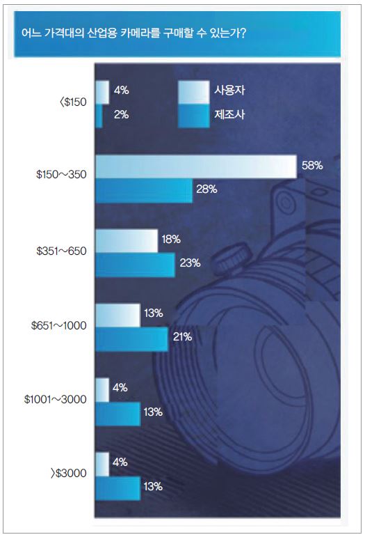 2017년 중저가 카메라의 가격이 안정세를 보인 반면, 제조사나 사용자의 반응은 가격이 다시 하락할 것으로 예상된다. 사용자의 62%는 카메라 한대에 350달러 이하를 쓸 준비가 되어 있다고 답했으며, 이는 전년도의 19%와 비교된다(그림 2).