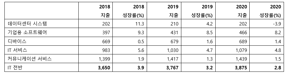 ▼ 세계 IT 지출 전망 (단위: 십억 달러) 자료: 가트너(2019년1월)