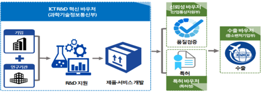 과기정통부는 ’16년부터 ‘ICT R&D 바우처’ 사업을 지원하고 있으며, 사업화 성공률, 일자리 창출 및 투자유치 등이 크게 개선된 것으로 조사·분석해 ’20년부터는 연간 1천 억원 규모로 확대·지원하기 위해 예비타당성조사를 준비하고 있다.