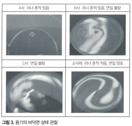 그림 3에 타사의 기존 제조 금형에 의해 성형한 용기의 바닥면 부분의 관찰 결과와 동사와의 비교를 나타냈다. OPM 시리즈가 조형한 3차원 냉각배관에 의해 수지의 유동성이 향상, 러너 흔적이 매우 작아지고, 또한 용기 바닥면의 양호한 면질을 얻을 수 있었다.